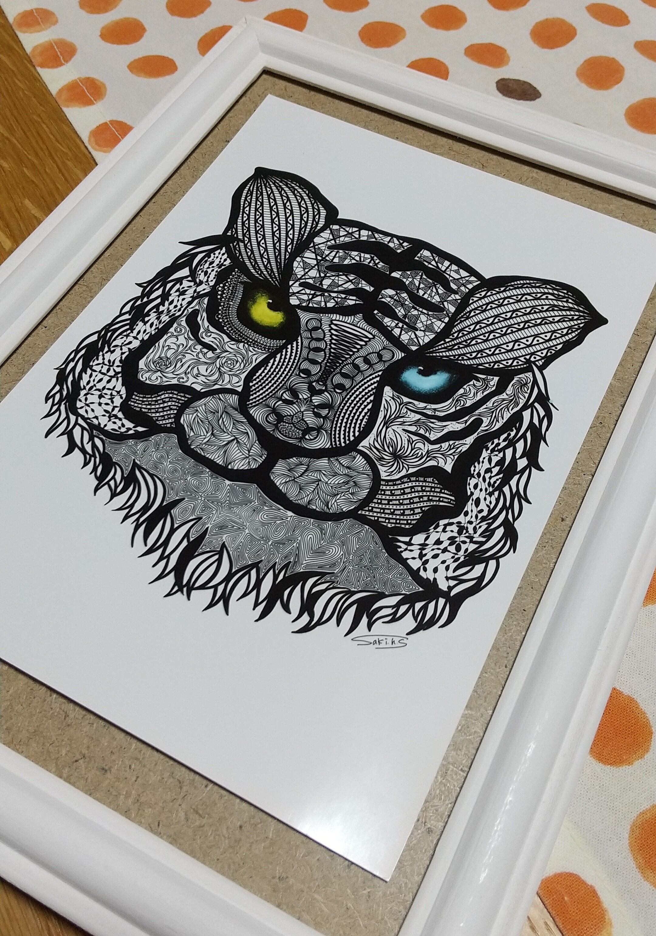 オッドアイの虎をゼンタングルで表現しました。